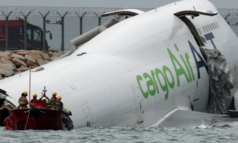 Një avion mallrash Boeing 747 rrëshqiti nga pista dhe u rrëzua në det në Aeroportin Ndërkombëtar të Hong Kongut të hënën në mëngjes, duke vrarë dy punonjës të sigurisë së aeroportit, automjeti i patrullës së të cilëve u godit nga avioni jashtë kontrollit. Katër anëtarët e ekuipazhit në bord të avionit mbijetuan.