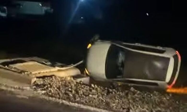 Sipas pamjeve të publikuar në mediat lokale, vërehet se një veturë është rrokullisur dhe ka përfunduar jashtë rrugës.