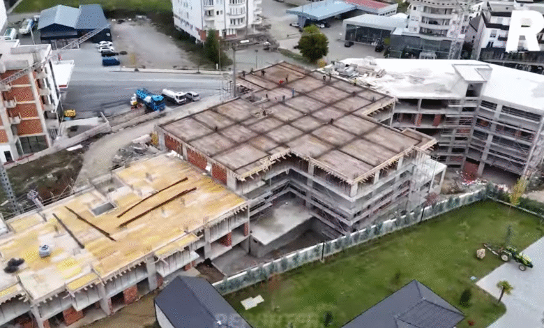 Ndërtimi, sipas hulumtimit të gazetës online Reporteri.net, po zhvillohet pjesërisht në tokë komunale dhe pjesërisht në pronë private. Leja ndërtimore, ndërkohë, është dhënë me vonesë – pasi punimet kishin filluar.