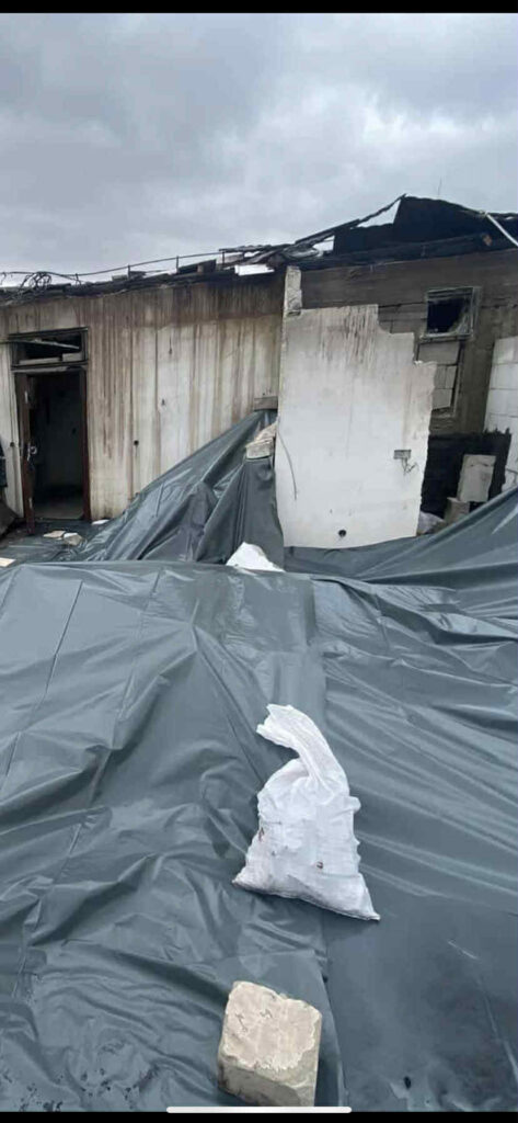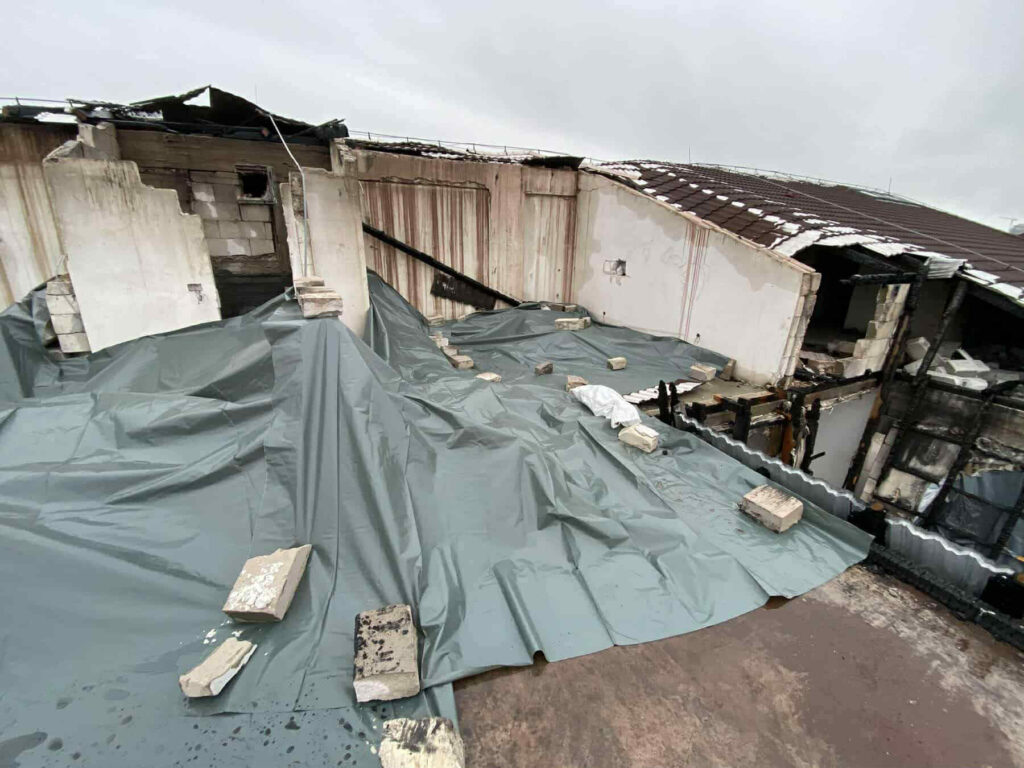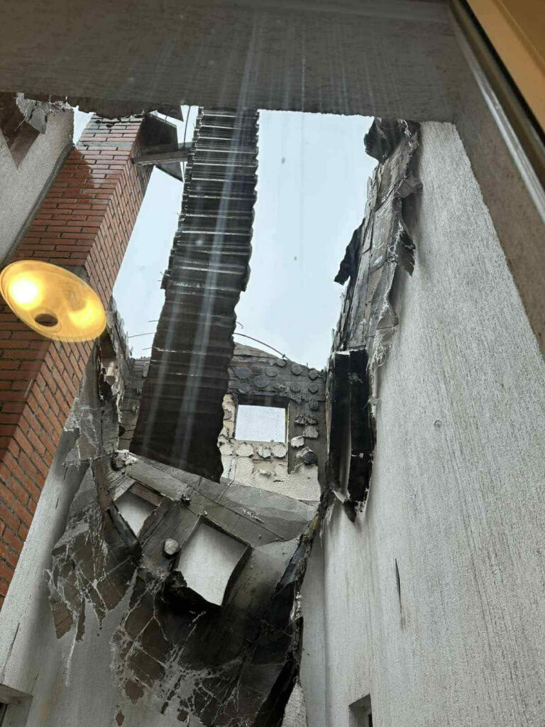 Siç shihni në foto, lagështia që vjen nga ndryshimi i kushteve atmosferike depërton në banesat e dëmtuara duke i rrezikuar banorët, si dhe përveç kësaj pjesët e djegura të mbetura nga zjarri rrezikojnë kalimtarët.