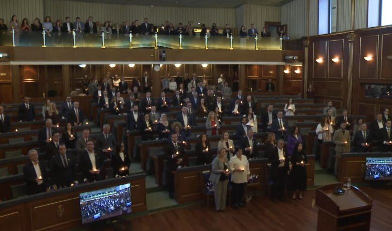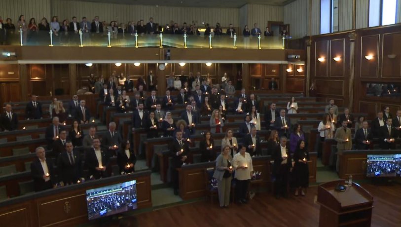 E në fillim të seancës, për nder të të mbijetuarve të dhunës seksuale të luftës, deputetët e Kuvendit të Kosovës kanë ndezur qirinj.