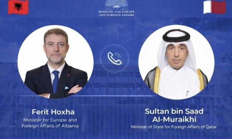 Ministri për Evropën dhe Punët e Jashtme, Ferit Hoxha ka zhvilluar sot një bisedë telefonike me ministrin e Shtetit për Punët e Jashtme të Katarit, Soltan bin Saad Al-Muraikhi.