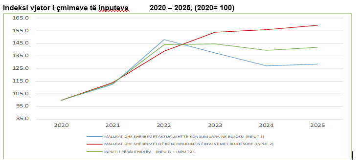 Indeksi vjetor i inputit të përgjithshëm (Input 1 + Input 2) ka rritje për 42,0 % në vitin 2025, krahasuar me vitin 2020.