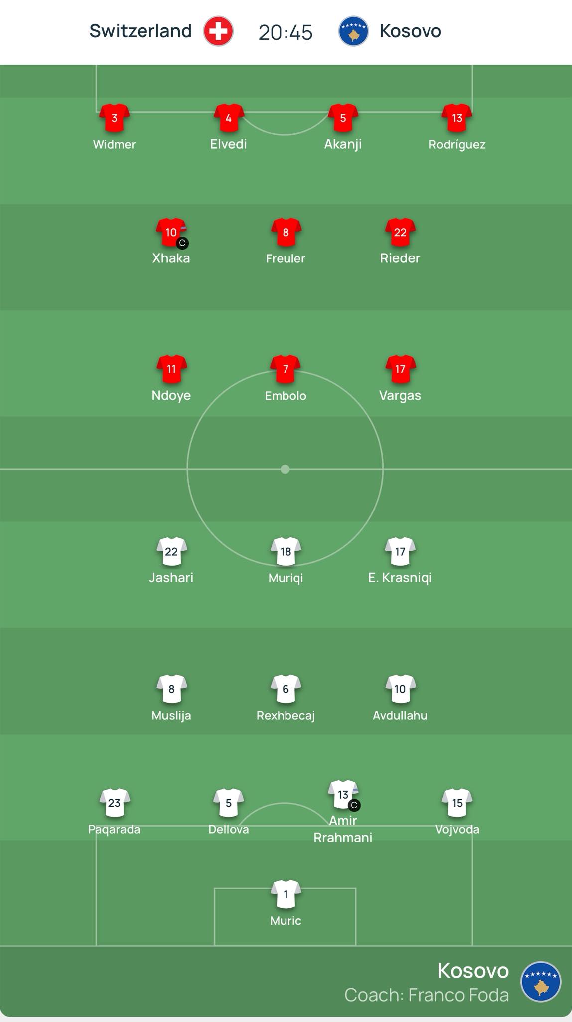 Pak më shumë se një orë para ndeshjes Zvicër-Kosovë janë bërë të ditura formacionet.