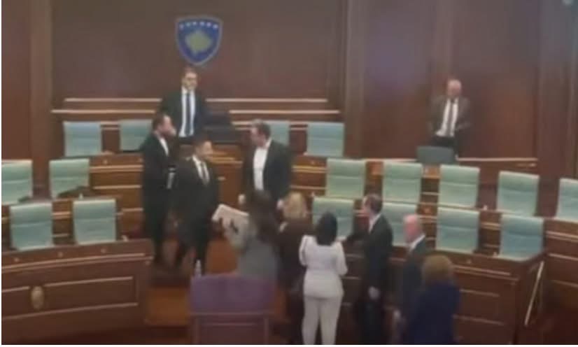 Derisa deputeti i LDK-së, Besin Mustafa kishte shkuar për të biseduar diçka të nënkryatri i Kuendit nga radhët e VV-së, Ardian Gola, i cili e udhëhiqte këtë seancë, aty ofrohet edhe deputeti i VV-së, Egzon Azemi.