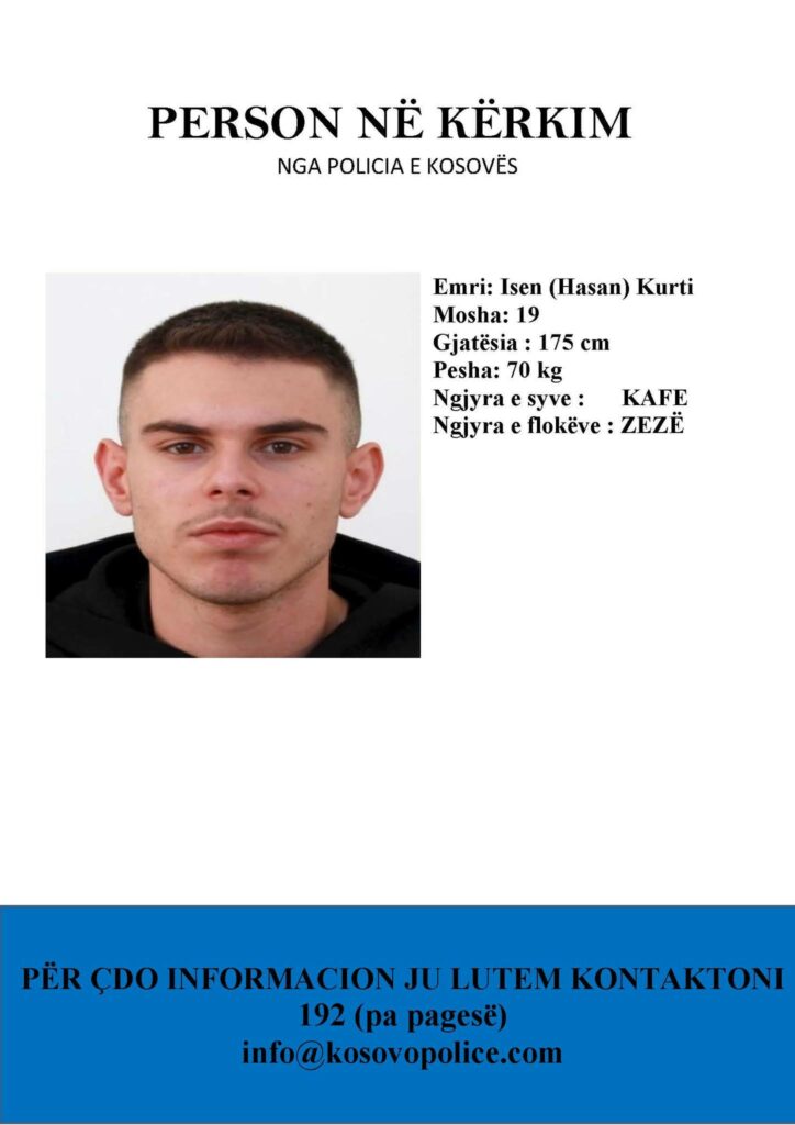 Policia ka kërkuar bashkëpunim për kapjen e Isen Kurtit, 19-vjeçarit të dyshuar për tentim vrasjen në Gjakovë, ku aksidentalisht u plagos një e mitur.