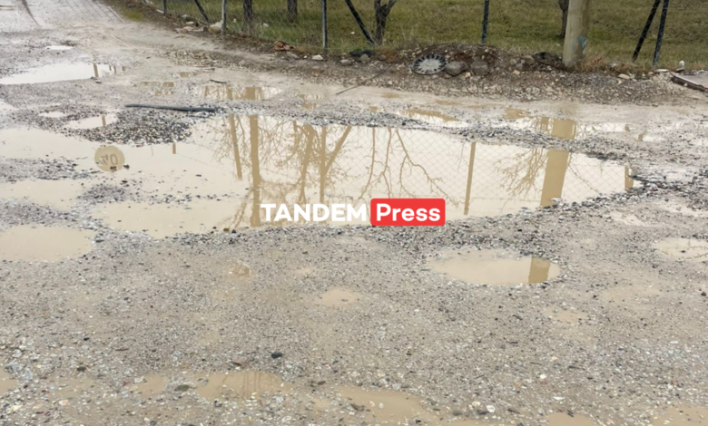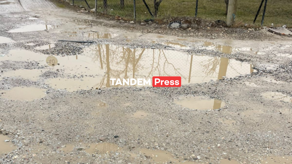 Ndërsa sipas fotografive që ka siguruar TandemPress, gjendja e rrugës është më baltë dhe ujë në gropa dhe po vështirëson trafikun./TANDEMPRESS/