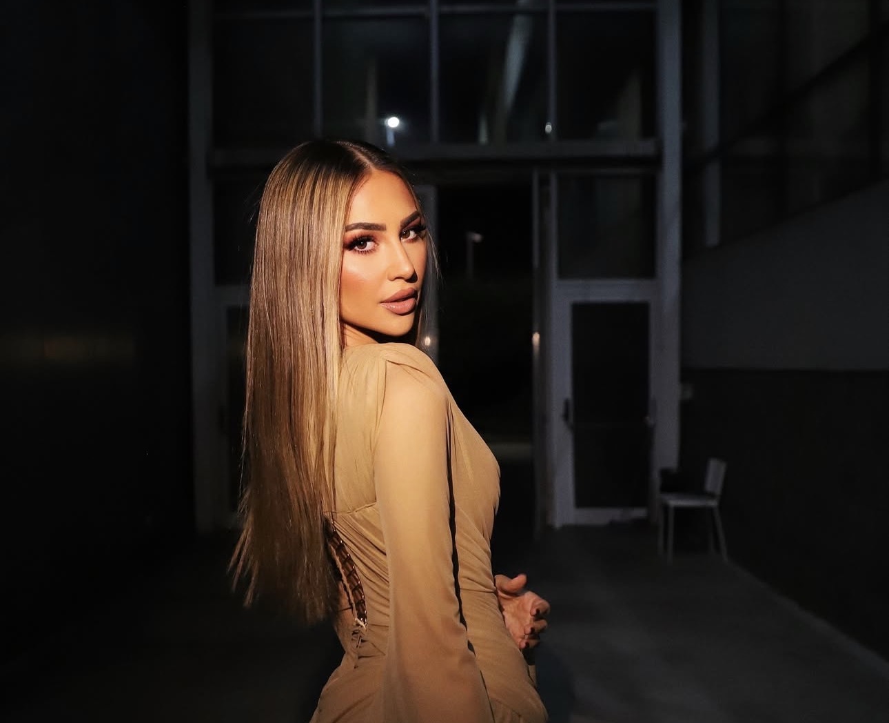 E veshur me një fustan të shkurtër ngjyrë bezhe, Kiara duket për bukuri, ndërsa veshja i thekson linjat dhe hijeshinë trupore, duke i dhënë pamjes një shkëlqim veror dhe plot energji.
