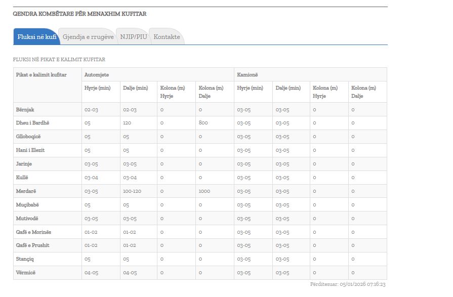 Janë përditësuar të dhënat nga Qendra Kombëtare për Menaxhim Kufitar lidhur me kolonat në pikat kufitare në Kosovë.