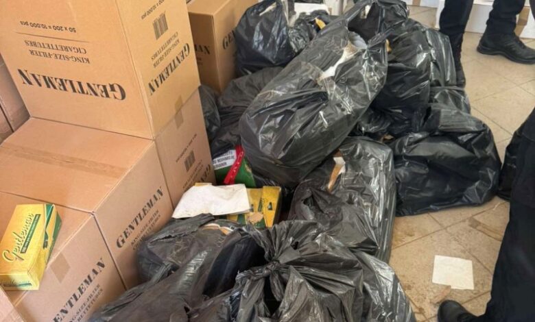 “Duhan i grirë (refuz) – 511 pako x 500 gr = 255.5 kg pa banderola. Mjaltë – 100 pako x 12 copë = 1,200 kg pa asnjë mbishkrim. Filtera cigaresh – 21 pako x 10,000 copë = 210,000 copë”, thuhet në njoftim.