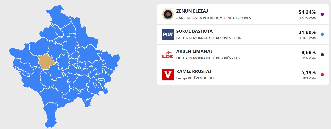 Në komunën e Klinës, i pari është Zenun Elezaj nga Aleanca për Ardhmërinë e Kosovës.