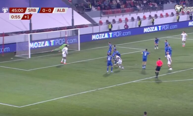 10’ Po luhet minuta e 10-të e ndeshjes në Leskoc, ku Shqipëria deri më tani nuk ka shfaqur ndonjë aksion të mirë shënimi për ta rrezikuar portën serbe.
