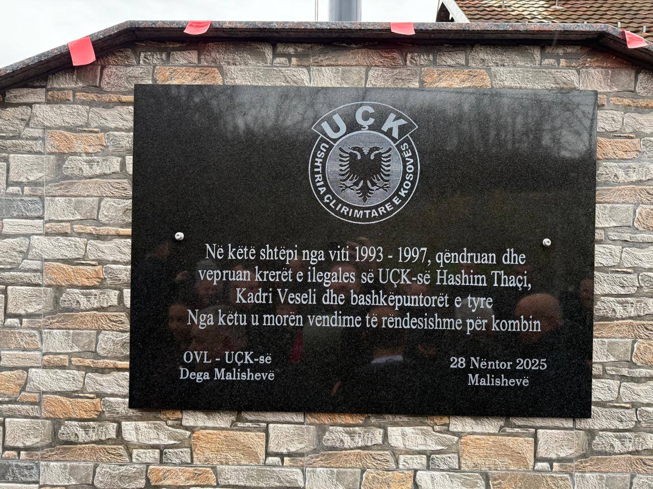 “Në Ditën e Ushtrisë së Kosovës dhe në prag të 28 Nëntorit, zbuluam pllakën në shtëpinë ku, gjatë viteve ’93 deri ’97, vepruan Hashim Thaçi e Kadri Veseli dhe ku u morën vendime që hapën rrugët e lirisë,” thanë organizatorët.