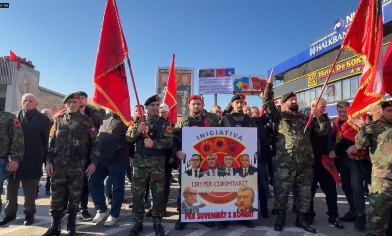 Një protestues, i veshur me uniformë të UÇK-së, tha se janë në këtë protestë, sikurse në të tjerat që janë mbajtur në Prishtinë, Tiranë, Strasburg e Hagë.