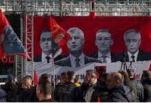 Një protestues, i veshur me uniformë të UÇK-së, tha se janë në këtë protestë, sikurse në të tjerat që janë mbajtur në Prishtinë, Tiranë, Strasburg e Hagë.