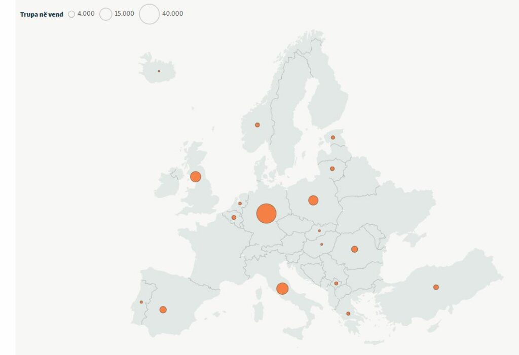 Por, trupat amerikane zhvendosen vazhdimisht nëpër Evropë, prandaj numrat për secilin vend mund të kenë ndryshuar ndërkohë.