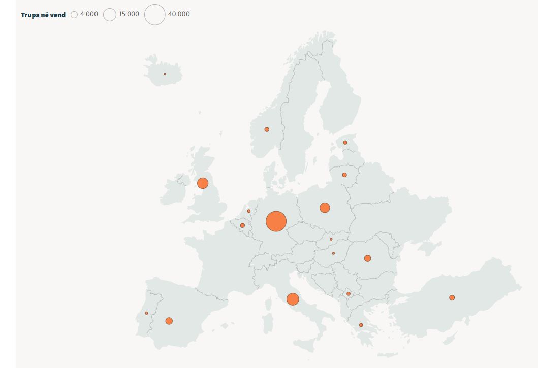Por, trupat amerikane zhvendosen vazhdimisht nëpër Evropë, prandaj numrat për secilin vend mund të kenë ndryshuar ndërkohë.