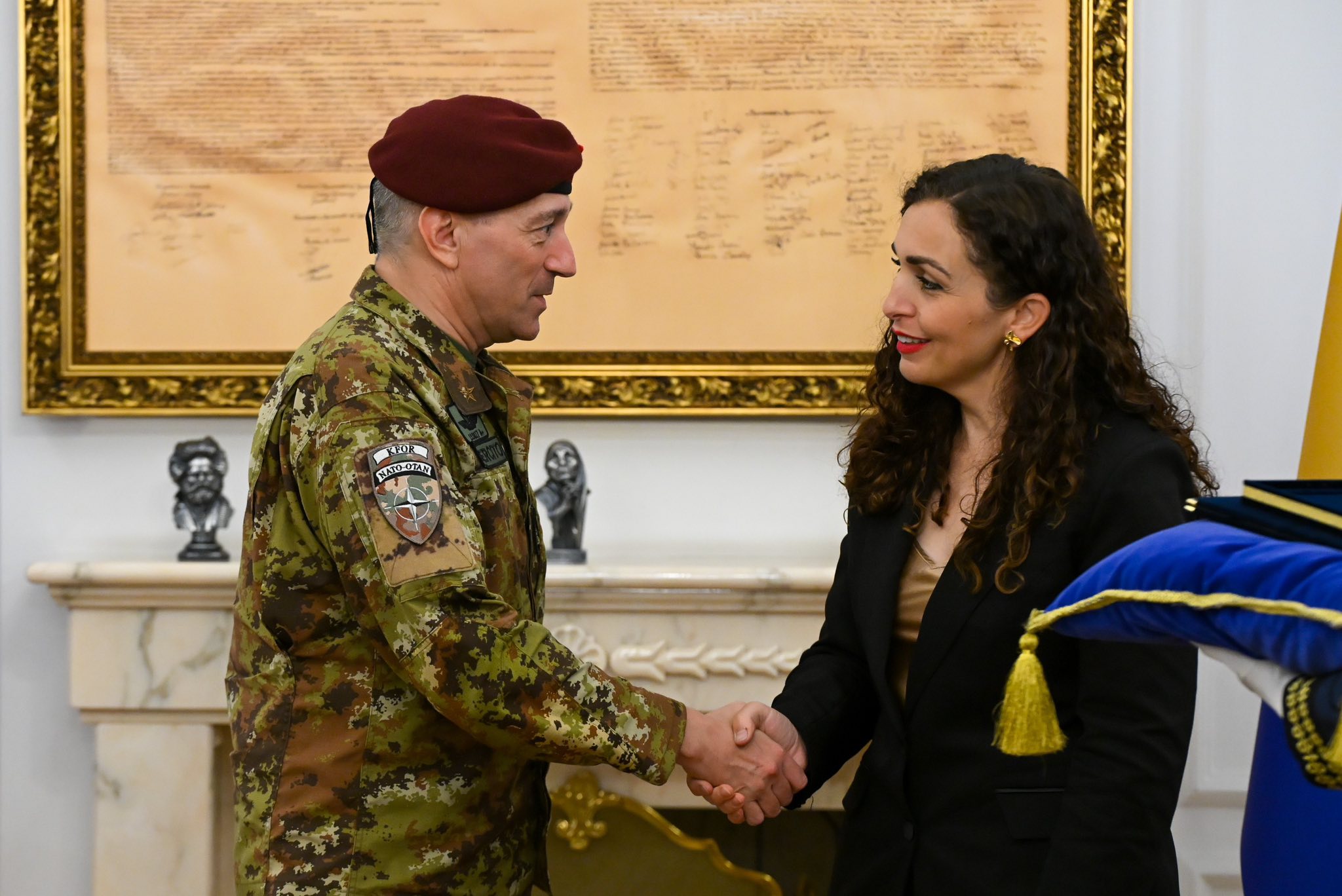 Presidentja Vjosa Osmani ka dekoruar komandantin e KFOR-it, Enrico Barduanin me Medaljen Presidenciale Ushtarake.