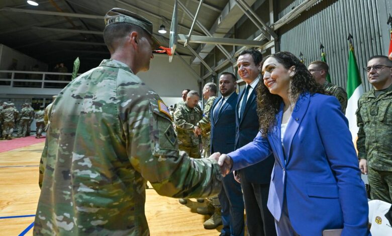 Presidentja e Republikës së Kosovës, Vjosa Osmani, mori pjesë sot në Kampin Bondsteel në ceremoninë e ndërrimit të komandës dhe pranim-dorëzimit të detyrës së komandantit të Komandës Rajonale-Lindje të misionit të KFOR.