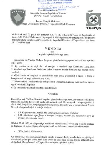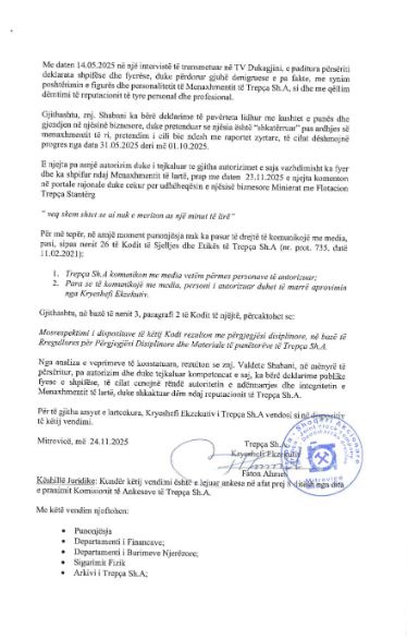 Por, nuk janë mjaftuar me kaq. Menaxhmenti i kësaj ndërmarrje ka vendosur që të suspendoj nga puna Shabanin, transmeton lajmi.net.
