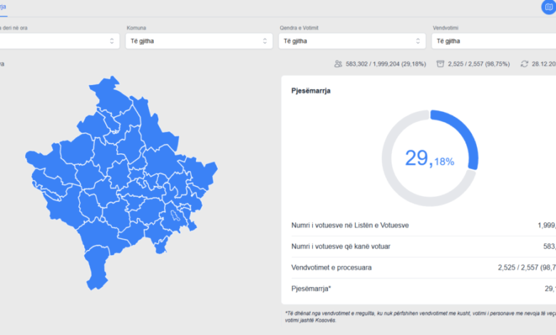Deri në përditësimin e fundit të orës 16:44, kanë votuar 29.18% e qytetarëve.