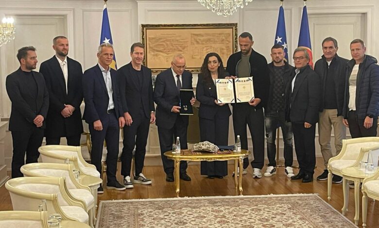 Presidentja e Kosovës, Vjosa Osmani ka dekoruar me medalje presidenciale futbollistët e Kombëtares së Kosovës.