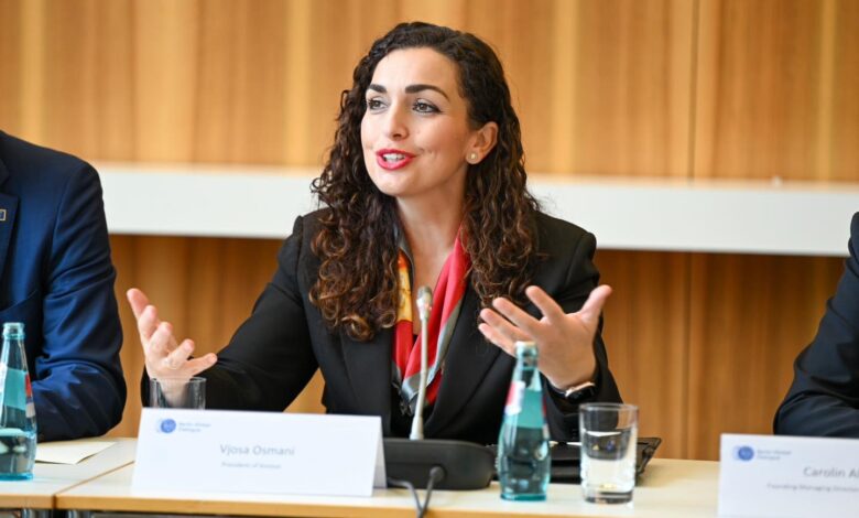 Presidentja Vjosa Osmani ka prezantuar potencialin e Kosovës në një tryezë me drejtues biznesesh nga vende të ndryshme të botës, në kuadër të Berlin Global Dialogue.