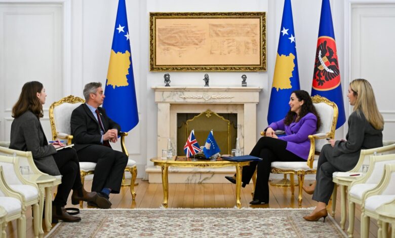 Presidentja e Republikës së Kosovës, Vjosa Osmani, priti sot në takim Ambasadorin e Mbretërisë së Bashkuar në Kosovë, Jonathan Hargreaves.
