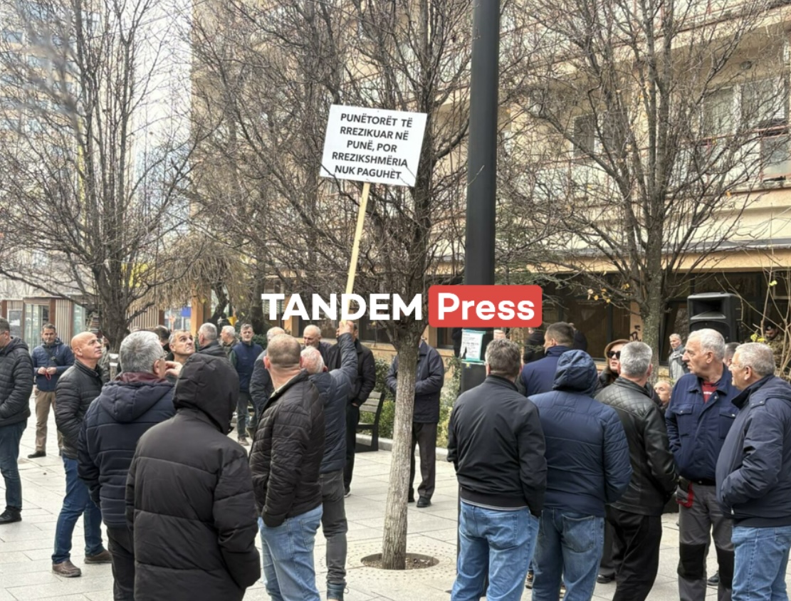 Sindikata e Re e KEK-ut po proteston para zyrave të Korporatës Energjetike të Kosovës (KEK) në Prishtinë.