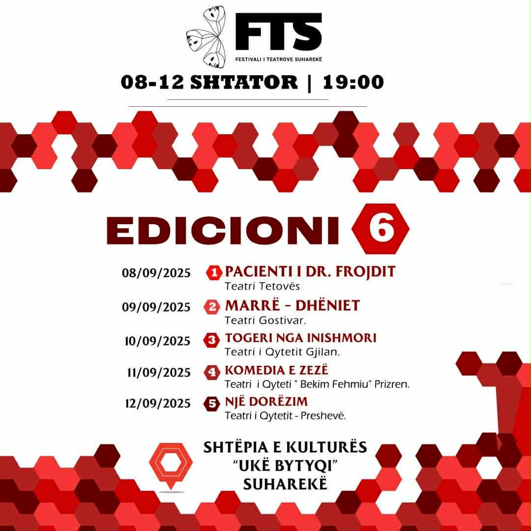 Nga e hëna në të premte fillimi i shfaqjeve do të jetë nga ora 19:00, ky festival do zhvillohet në Shtëpinë e Kulturës “Ukë Bytyçi”, në Suharekë.