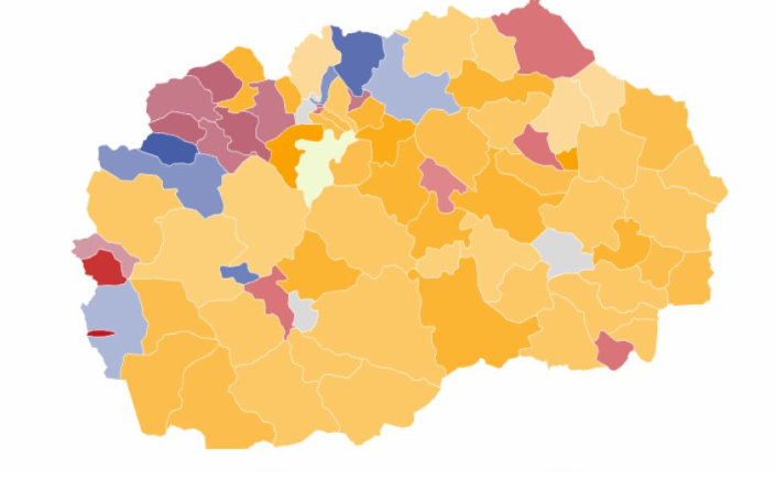 Në raportimin e parë të publikuar pas mbylljes së kutive shihet një dominim të territorit në hartë nga ngjyra e përfaqësuar për VLEN, ndërsa disa vendbanime mbeten të përziera, raporton Zhurnal.mk, transmeton TandemPress.