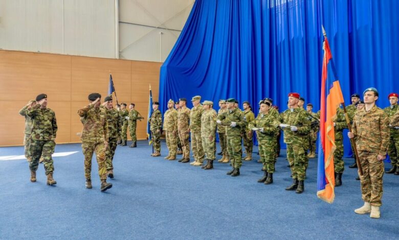 Zëvendëskomandanti i KFOR-it, gjenerali Federico Collina, kryesoi ceremoninë e transferimit të autoritetit të grupit mbështetës të Shtabit të KFOR-it (HSG), të mbajtur në “Camp Film City”, në Prishtinë.