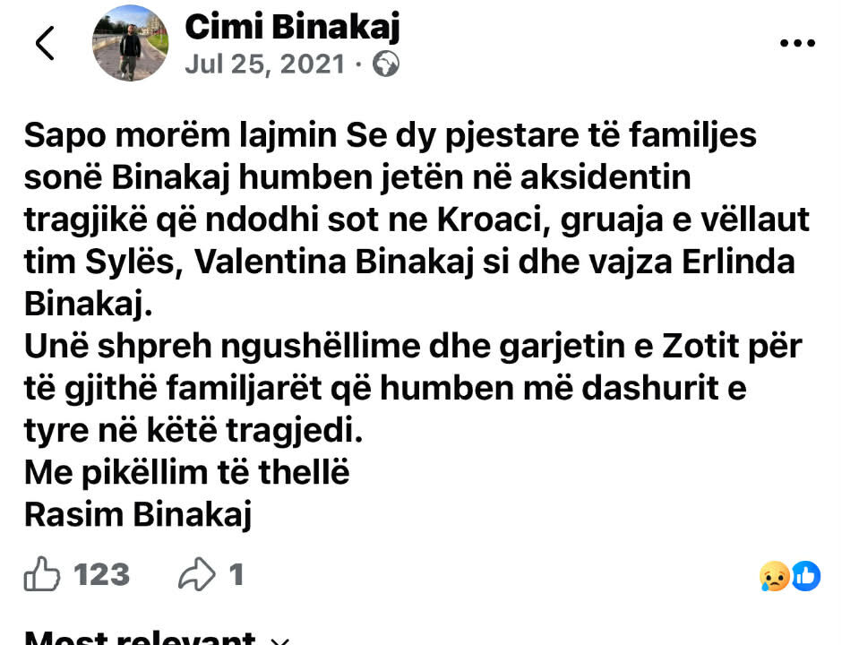Lidhja e tyre është mësuar nga kërkimet në rrjetet sociale ku është parë që në vitin 2021, tashmë i ndjeri, kishte njoftuar për aksidentin tragjik në Kroaci, ku kishin mbetur të vdekura nëna dhe motra e Elijones.